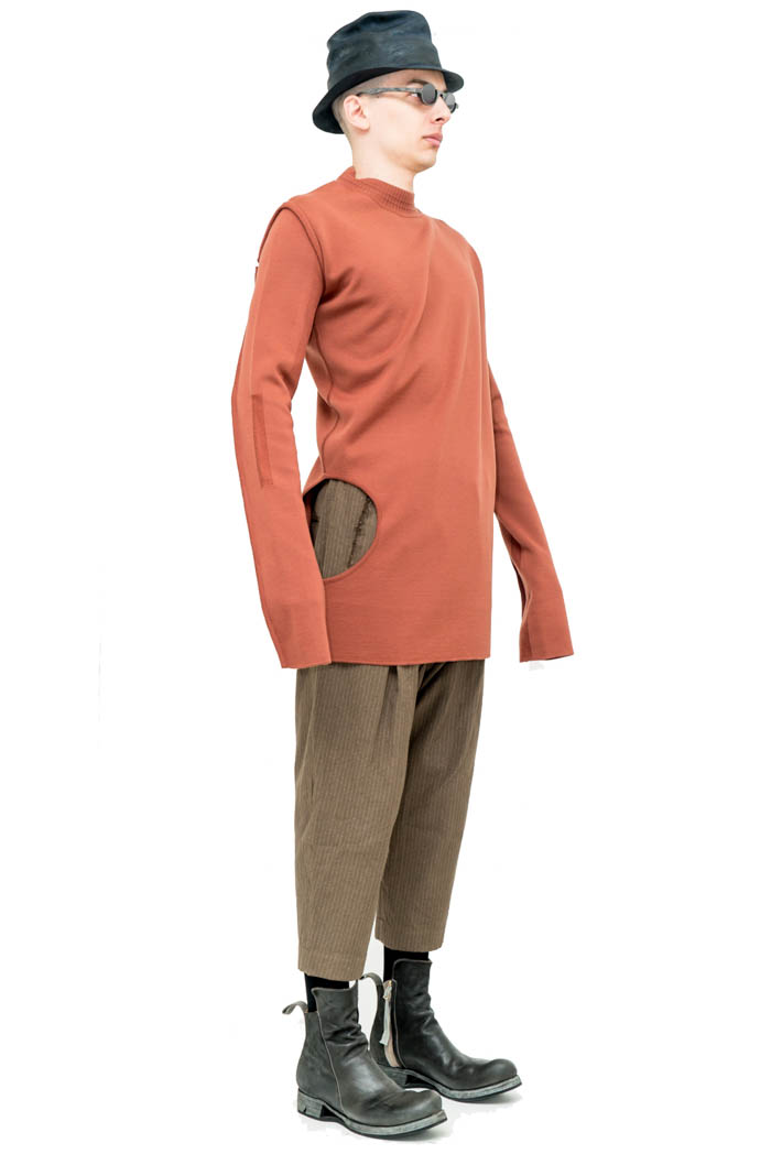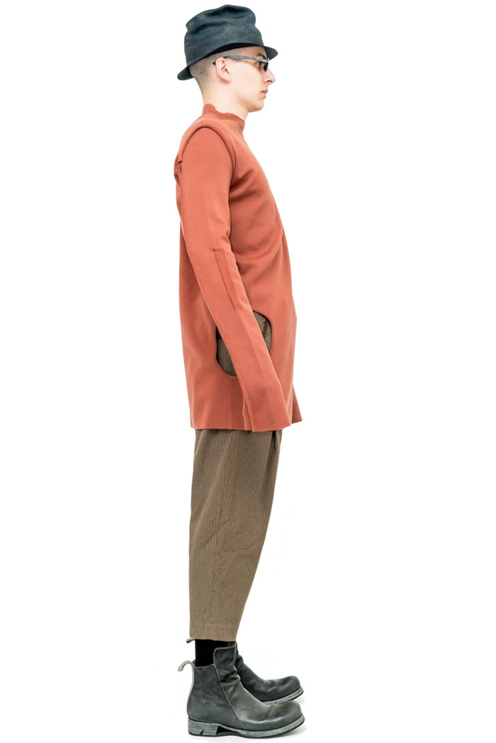 RICK OWENS - SUBHUMAN SWEATER Home>Shop>RICK OWENS>RICK OWENS - SUBHUMAN SWEATER RICK OWENS - SUBHUMAN SWEATER RICK OWENS FW17 GLITTER OFF-THE-RUNWAY SUBHUMAN SWEATER IN ORANGE TERRA WOOL FEATURE A BELOW-THE-HIP LENGTH Composition | A: 100% new wool Fit | Slim Treatment| Hole on the side, oblique cut Low turtleneck Made in Italy This product is currently out of stock and unavailable. UGS : ND Catégories : RICK OWENS, knitwears & sweatshirts Étiquettes : _027, avantgarde, boutique, essapmi, fashion, handmade, lyon, rick owens Share000